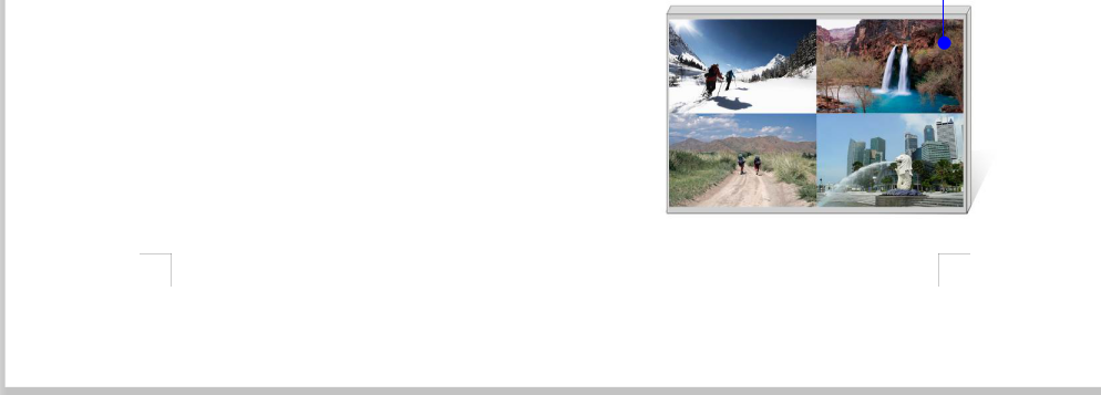 3畫面輸出 | ·同時(shí)在屏幕上呈現(xiàn)3個(gè)或3個(gè)以下的畫面,這些畫面可以來(lái)自不同或相同的輸入信號(hào) ·每個(gè)畫面均可自由縮放、布局,畫面之間可相互疊加 |