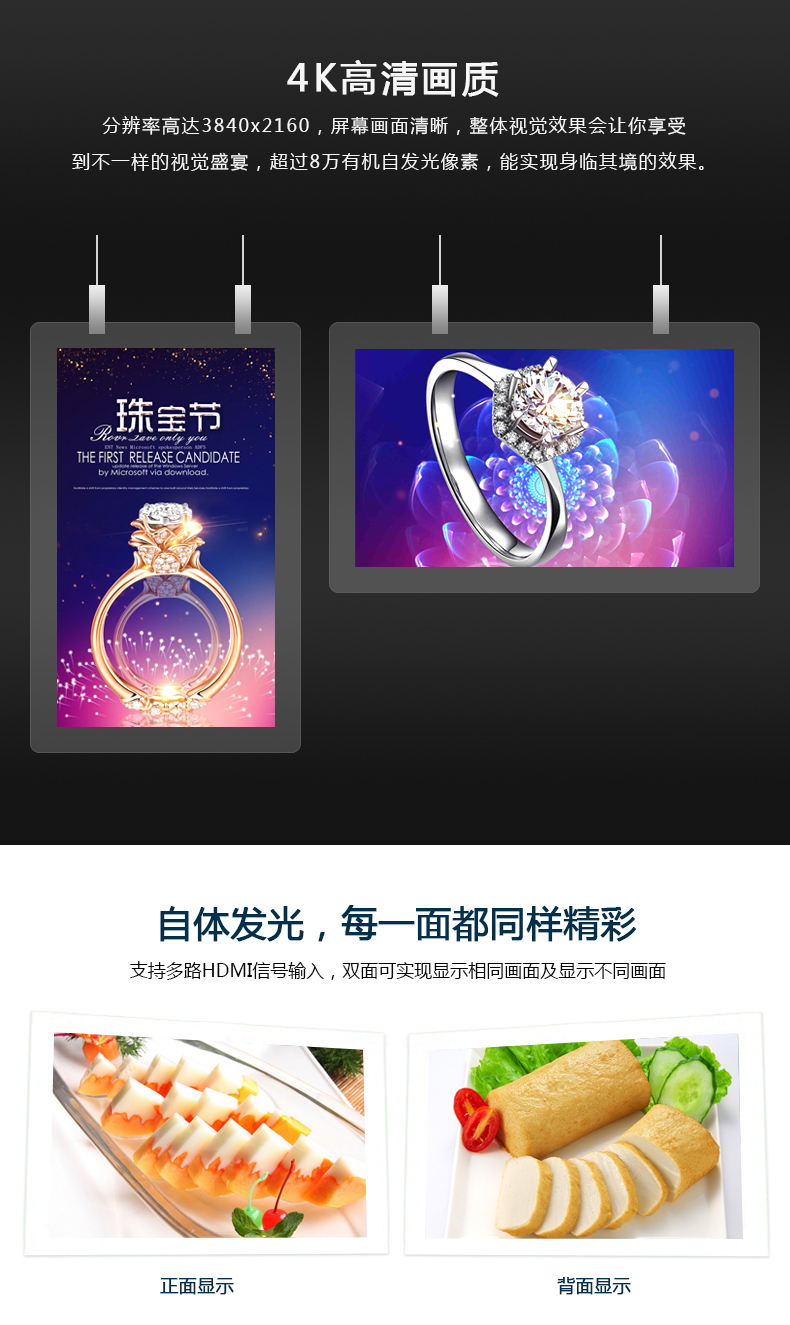 【深圳市美佳愛-液晶廣告機,觸摸一體機生產(chǎn)廠家電話400-997-9971】77寸超薄OLED雙面吊掛廣告機ISO9001_3C認證,主營多點紅外/電容式觸摸屏一體機,觸控查詢一體機,其他尺寸18.5寸21寸24寸27寸32寸40寸43寸46寸49寸55寸65寸75寸86寸98寸100寸多功能多媒體教學(xué)會議一體機,戶外立式/壁掛雙面廣告機,單機版/安卓網(wǎng)絡(luò)廣告機 豎屏樓宇電梯廣告機,長條型屏,工業(yè)級工控電腦觸摸顯示器,大尺寸觸摸屏查詢系統(tǒng),商顯平板電腦電視,提供報價價格,安裝施工,售后維修等