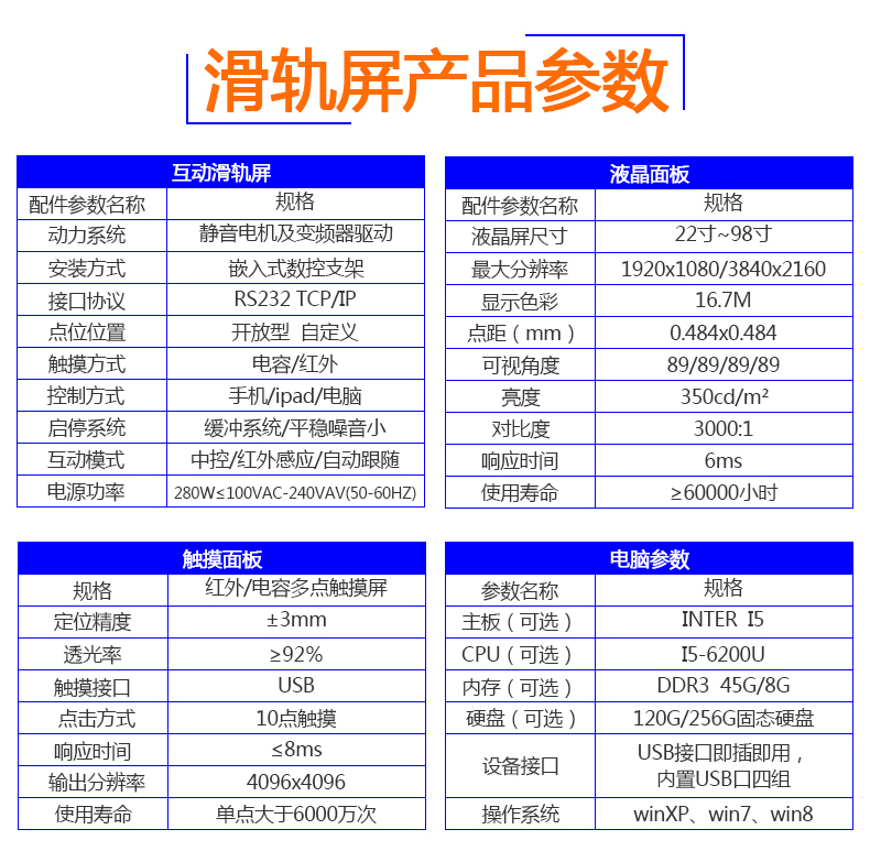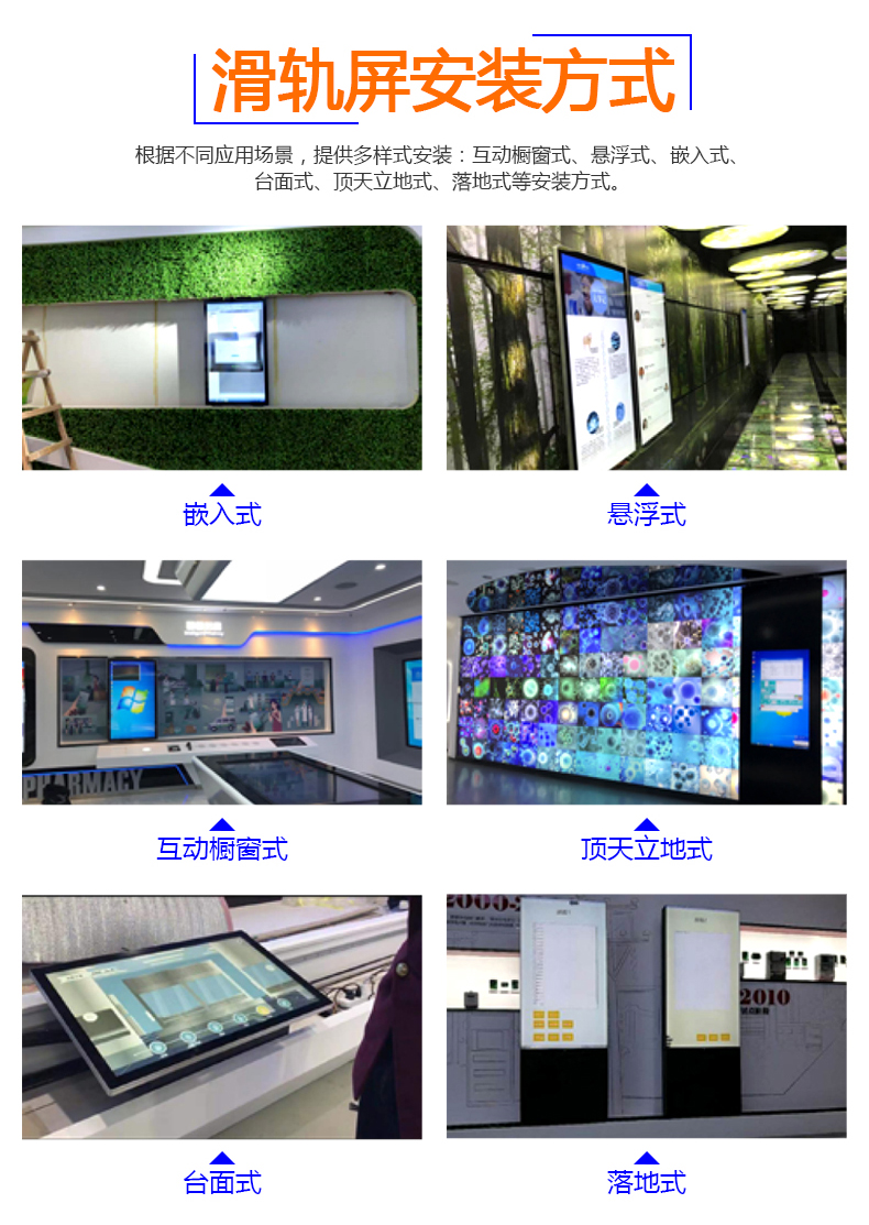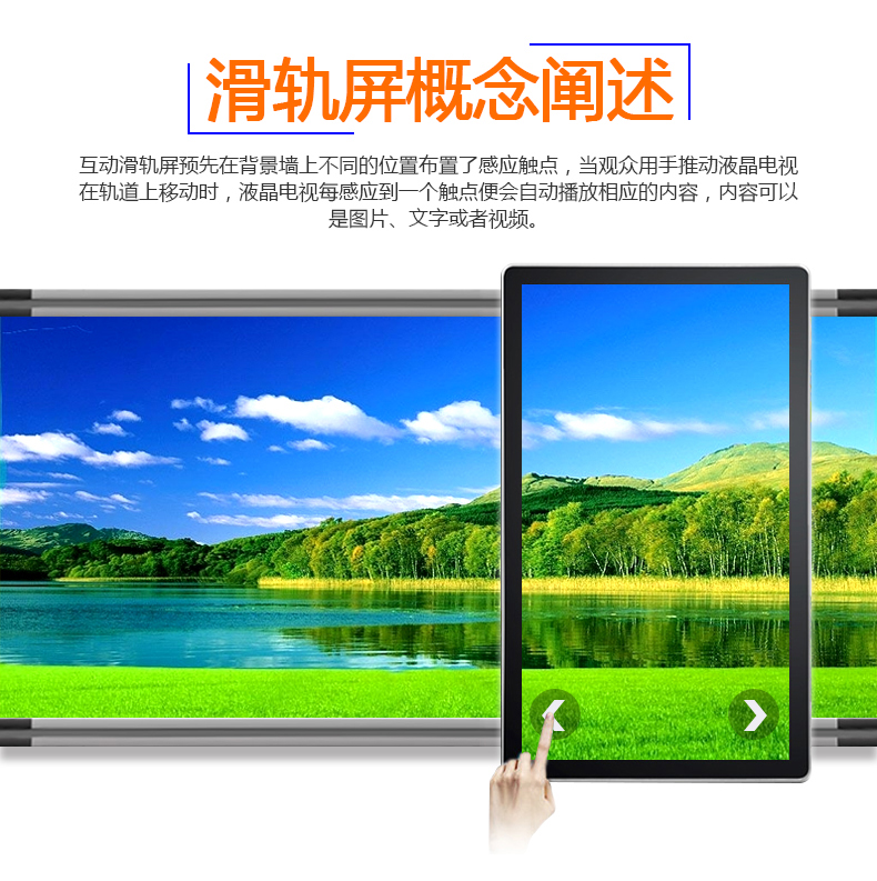 定制展廳/展館推拉式/電動移動/自動互動滑軌屏