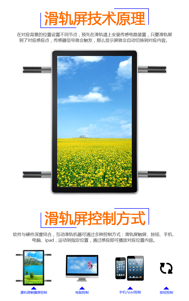 【深圳市美佳愛-液晶廣告機,觸摸一體機生產(chǎn)廠家電話400-997-9971】定制展廳/展館推拉式自動互動滑軌屏ISO9001_3C認證,主營多點紅外/電容式觸摸屏一體機,觸控查詢一體機,其他尺寸18.5寸21寸24寸27寸32寸40寸43寸46寸49寸55寸65寸75寸86寸98寸100寸多功能多媒體教學(xué)會議一體機,戶外立式/壁掛雙面廣告機,單機版/安卓網(wǎng)絡(luò)廣告機 豎屏樓宇電梯廣告機,長條型屏,工業(yè)級工控電腦觸摸顯示器,大尺寸觸摸屏查詢系統(tǒng),商顯平板電腦電視,提供報價價格,安裝施工,售后維修等