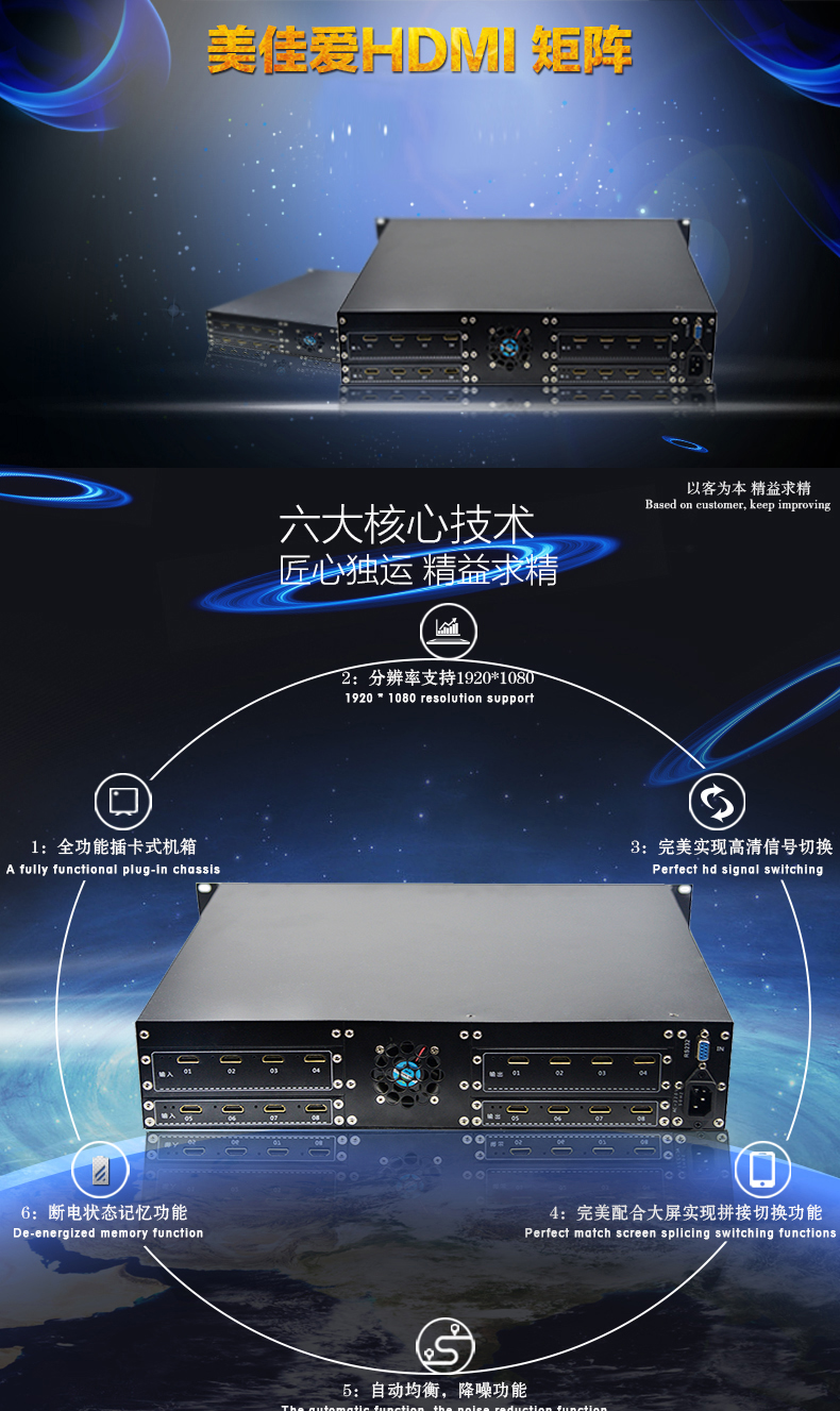 【深圳市美佳愛-矩陣切換器,視頻拼接處理器生產(chǎn)廠家電話400-997-9971】HDMI矩陣切換器(插卡式)產(chǎn)品通過ISO9001_3C認(rèn)證,型號(hào)規(guī)格有4進(jìn),8進(jìn),12進(jìn),16進(jìn),24進(jìn),32進(jìn),48進(jìn),64進(jìn),128路輸入,4出,8出,12出,16出,24出,32出,48出,64出,128路輸出,專業(yè)提供LED視頻處理器,監(jiān)控音視頻矩陣切換器,DVI/SDI/RGB/HDMI/VGA混合矩陣,外置拼接處理器,視頻服務(wù)器,云處理器,液晶大屏幕處理器,視頻分配器,網(wǎng)絡(luò)高清數(shù)字解碼矩陣主機(jī)生產(chǎn)廠家,高品質(zhì),穩(wěn)