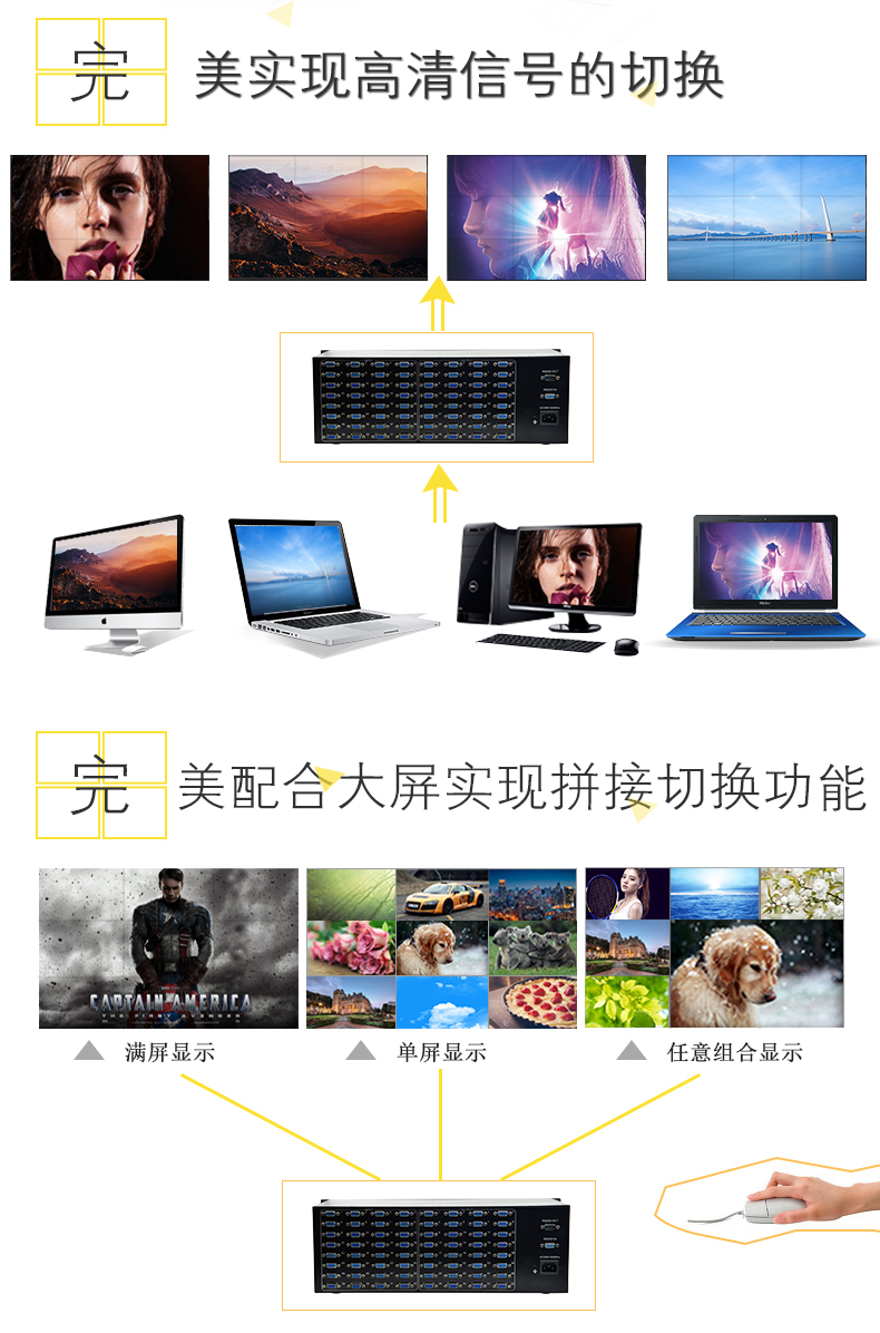 【深圳市美佳愛-矩陣切換器,視頻拼接處理器生產(chǎn)廠家電話400-997-9971】VGA矩陣切換器產(chǎn)品通過ISO9001_3C認證,型號規(guī)格有4進,8進,12進,16進,24進,32進,48進,64進,128路輸入,4出,8出,12出,16出,24出,32出,48出,64出,128路輸出,專業(yè)提供LED視頻處理器,監(jiān)控音視頻矩陣切換器,DVI/SDI/RGB/HDMI/VGA混合矩陣,外置拼接處理器,視頻服務(wù)器,云處理器,液晶大屏幕處理器,視頻分配器,網(wǎng)絡(luò)高清數(shù)字解碼矩陣主機生產(chǎn)廠家,高品質(zhì),穩(wěn)定性強的產(chǎn)品